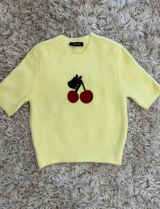 JANOVA Cherry Short Sleeve Knit Sweater - 3 Colors